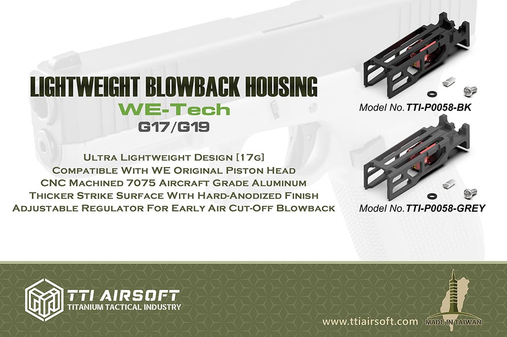 Das CNC-gefräste, leichte Blowback-Gehäuse von TTI sorgt für messbare Leistungssteigerungen bei den WE G17 und G19 GBB-Pistolen.