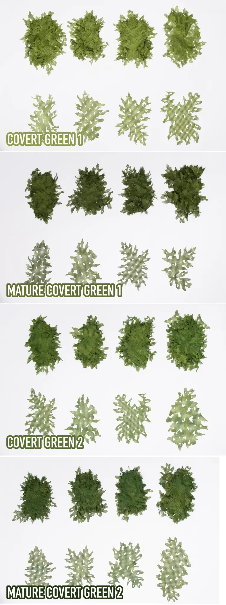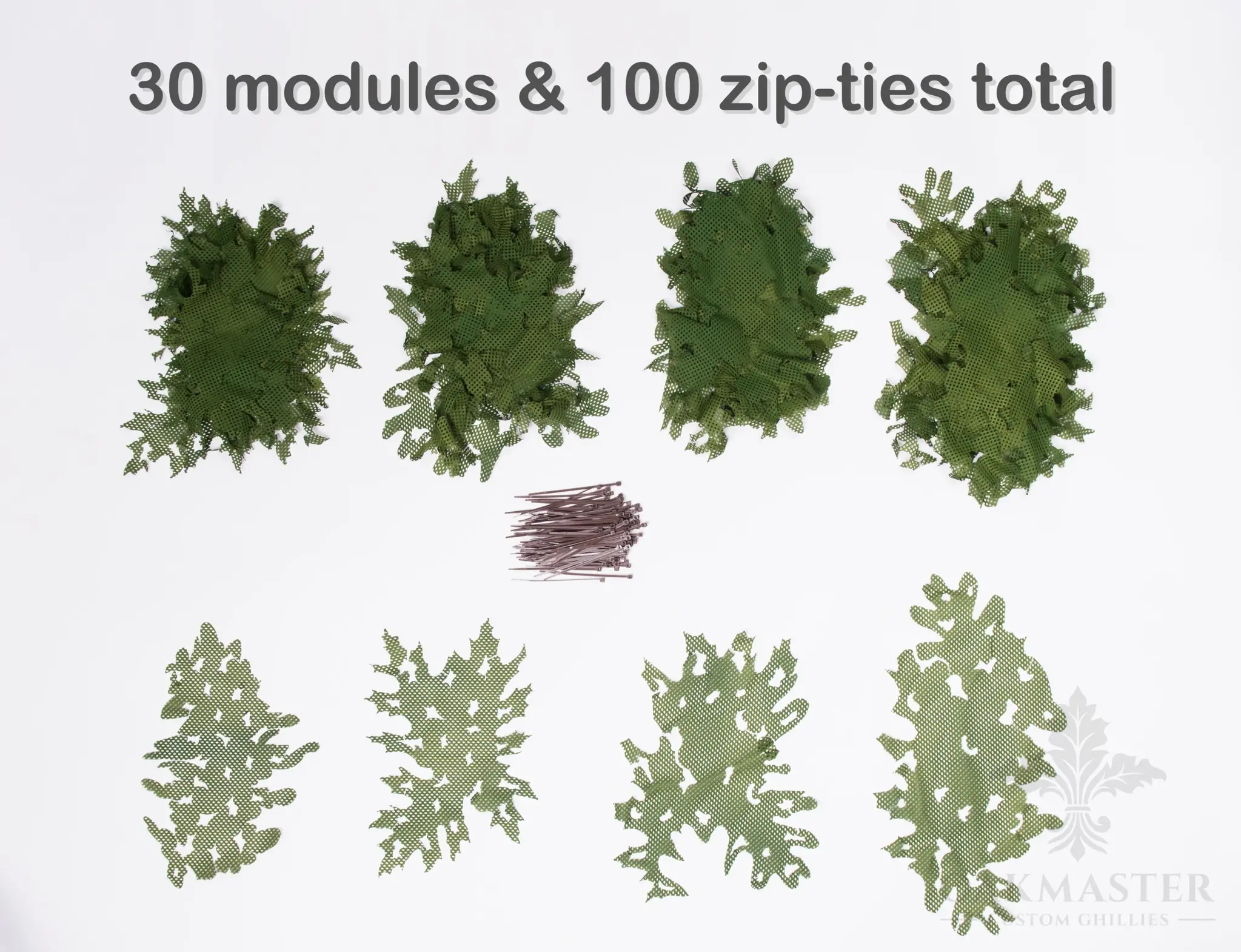 - MacroNet Mature Covert Green 2 (3d modules) x 30 pcs. (Several different shapes in one package, packed randomly.)
