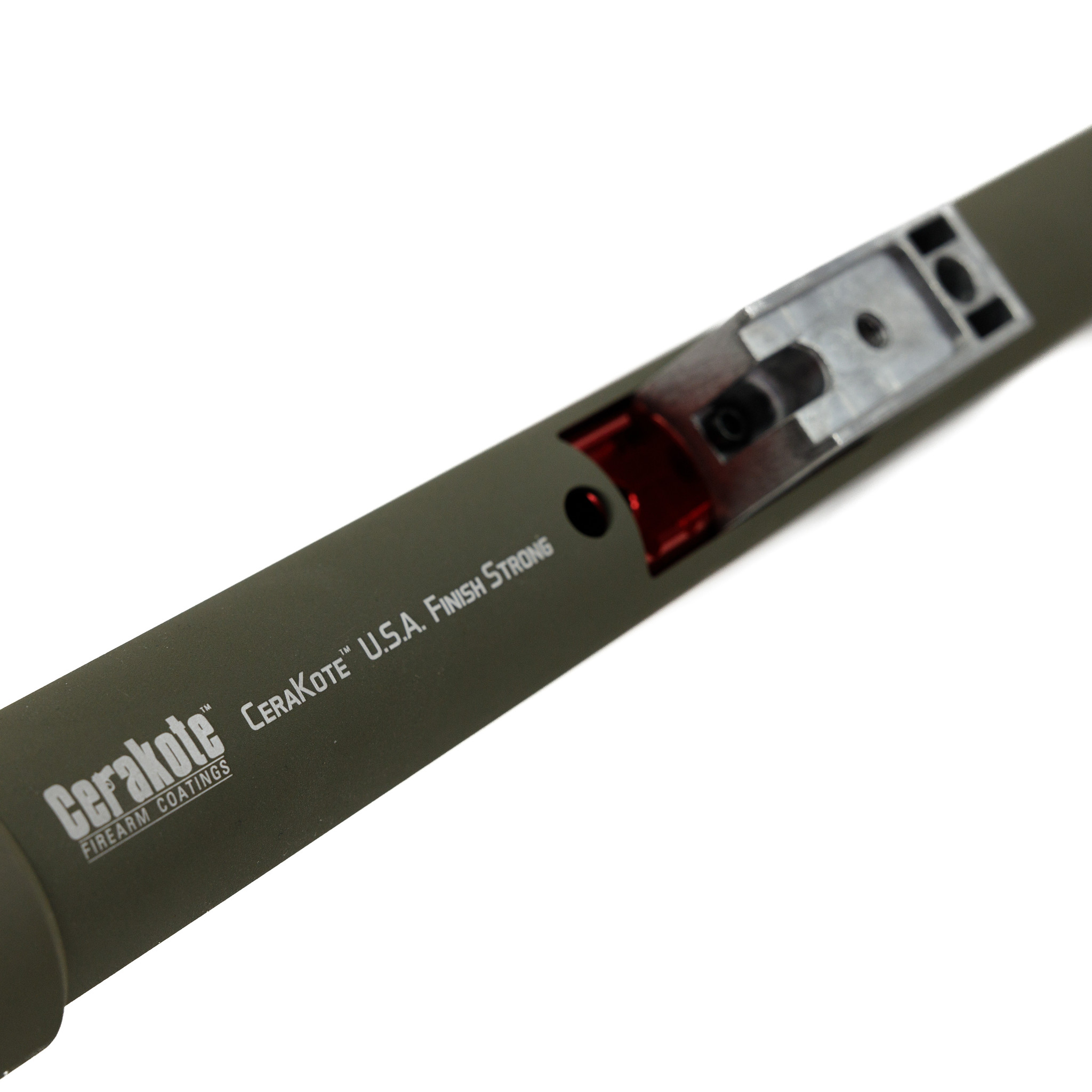 - Maple Leaf Receiver, bubble picatinny rail and Outer barrel in Olive Drab (cerakoted)